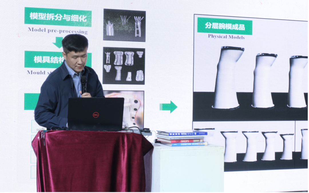 在开场不久,Roger Ball教授带来《人体界面与东西方人因差异》的主题报告,介绍了他在设计领域15年间从事的工作及经验,分享了五个以人为中心的设计案例,分别是适合亚洲人的滑雪头盔的设计、搭建世界第一个存放中国人人因数据的系统、中国人脸型的分析工作、耳朵的扫描工作以及4D扫描工作的介绍,并表示希望在未来能够设计更多为客户定制参数化的产品,而不是让人适应产品。此外,Roger教授的博士生Ching也介绍了她目前所从事的定制胸罩,定制眼镜框以及定制化口罩方面的工作, 以应用案例的方式向大家展示了为用户体验所做的交互努力。