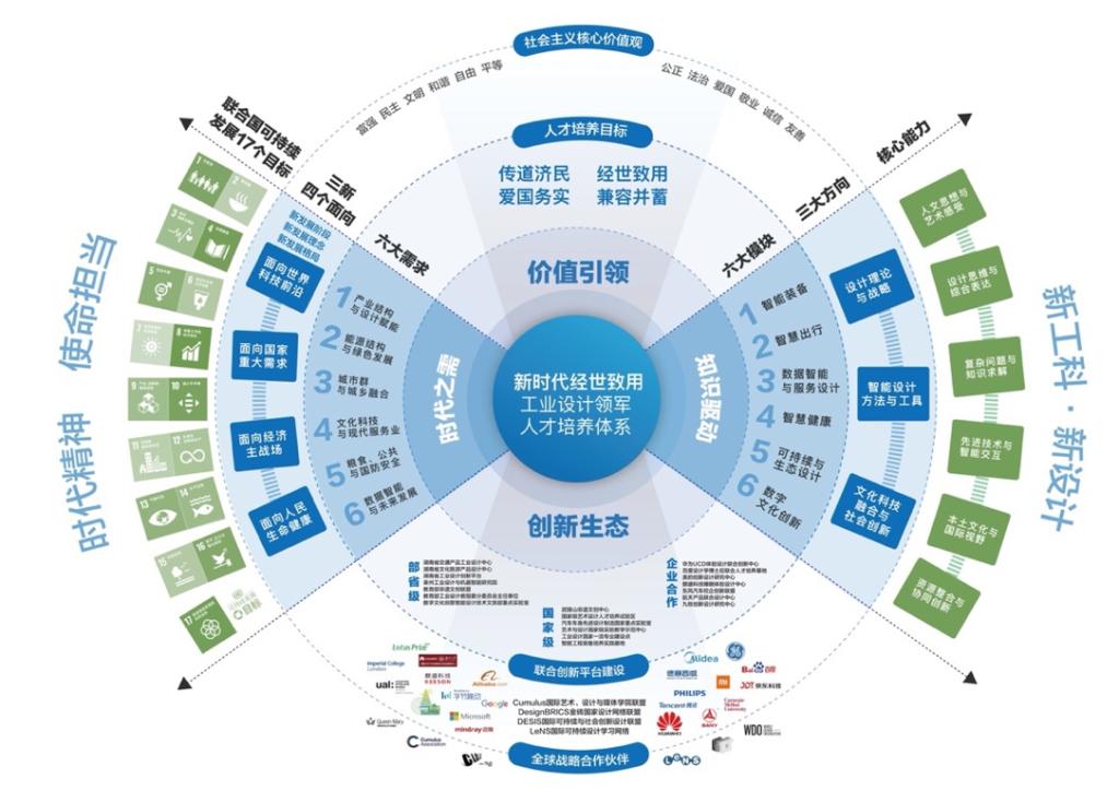 主要内容:以全球视野、国家战略和民生之维来重新定义工业设计的时代坐标,以互联网、大数据、人工智能等新技术为手段提升产业服务能力,以时代精神、使命担当和优秀文化资源铸造设计新文化,率先打造工业设计数字化教育新形态,建构师生互动、自主融合的创新知识与实践的“新时代经世致用工业设计领军人才培养体系”,以“一核双翼”引领全国工业设计人才自主培养的战略布局。
