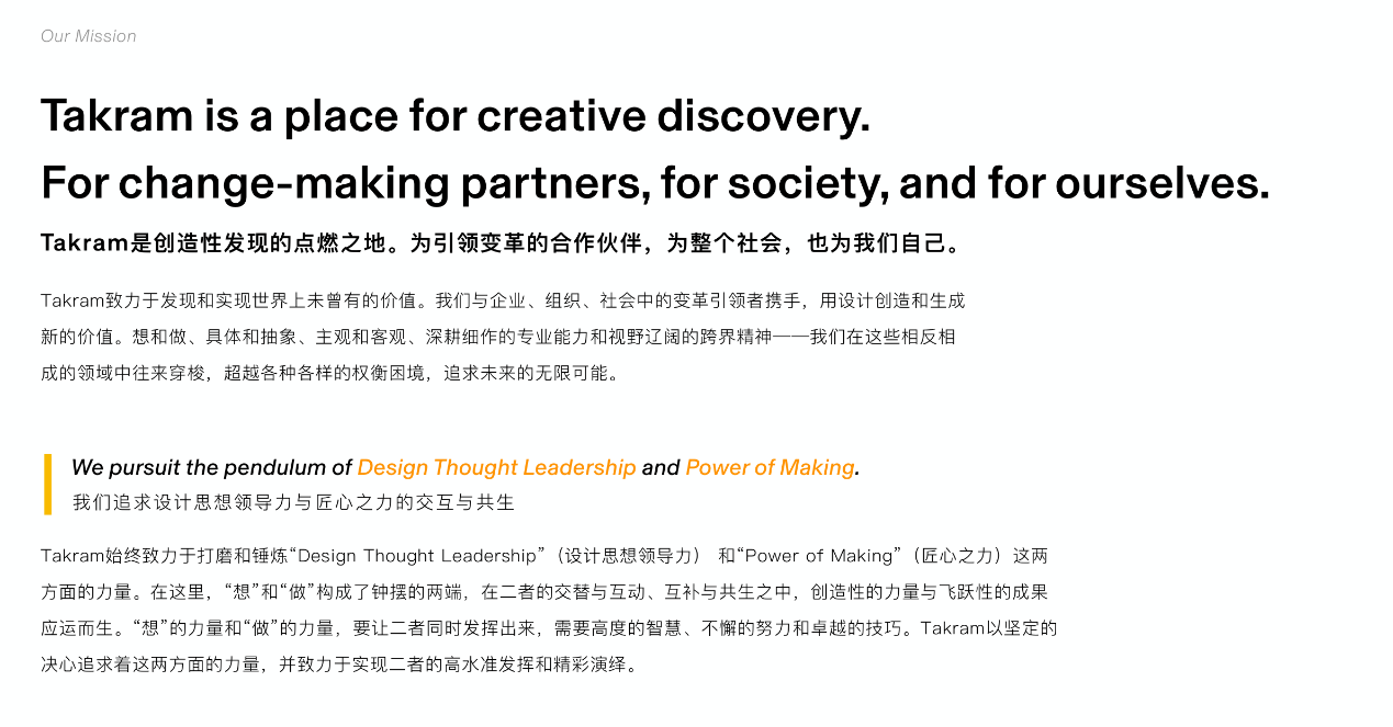 由Takram上海分公司负责人赵子骏组织的课堂以“Design Innovation”为主线,从“Pendulum thinking”“Making futures tangible: approaches and case studies”“Purpose: sustainable design in business practice”三个方面分享了公司这些年在全领域设计创新实践中的探索和研究,让同学们看到商业领域中不同层面的设计参与可能性,加深了对于设计现状的认知也开拓了视野。