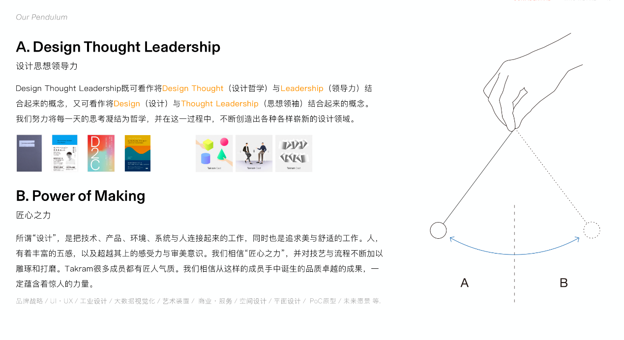 这个课堂的第一次课由Takram创始人Kinya Tagawa(田川 欣哉)主讲。从机械转型设计,创立并执掌一家富有创造力的跨国全领域设计公司,曾在英国皇家艺术公司担任客座教授并获名誉教授,田川既有丰富的业界经验,也有卓越的见地,独到的设计思维开拓与管理方法。在课程中,田川重点介绍了“Pendulum Thinking(钟摆式思考)”,强调设计里不是两股力量的交融妥协,而是在高速交替思考后找到满足各种需求的最佳解决方案。之后,又通过两个案例:Shenu: Hydrolemic System;SHIMIZU S-PULSE Brand Renewal,分别展示了商业领域的未来愿景设计可能性,以及设计实现过程中的调研方法和核心要素。