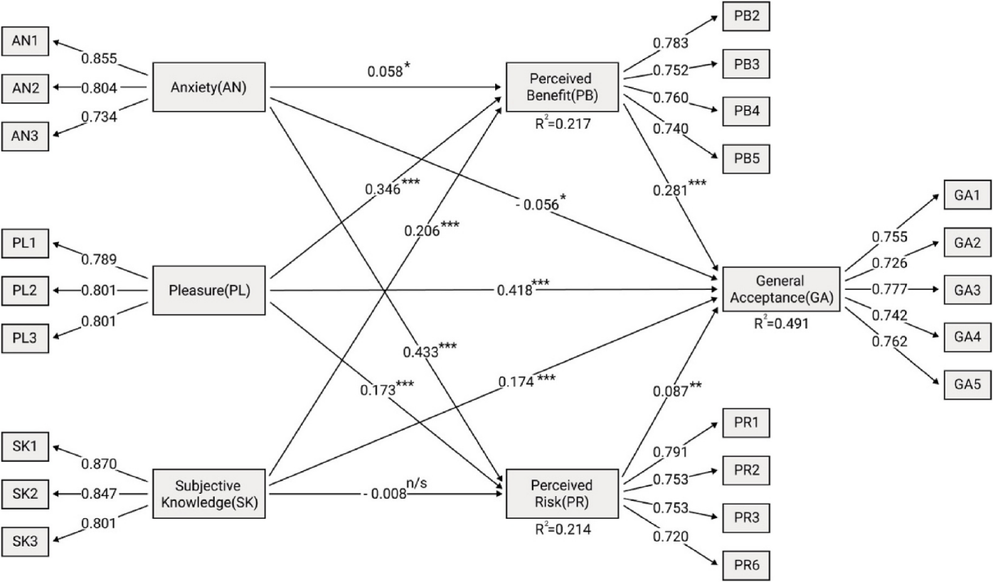 图3 研究结果:公众接受自动驾驶汽车影响因素的定量结构模型