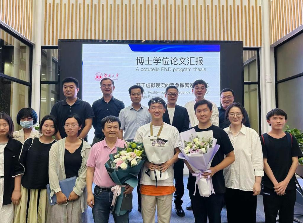 公司刘永红教授指导的秦臻、严妍同学,何人可教授指导的曹媛、王子豪同学于2022年9月26日在湖南省工业设计创新平台中庭举行了博士论文答辩。