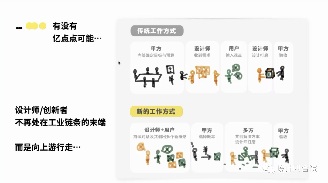 第三部分, Linda提出在商业丛林中设计师如何更具主导地位?她介绍了一种以设计师和用户的持续对话及共创作为设计开端的新的工作方式。造点团队在乡村的工作经验中发现了儿童早期发展议题,并通过两年的自主探索形成了较为成熟的设计概念,在此前提下吸引了包括妙思乐等企业的加入与投资,实现了对设计概念的落地与规模化。