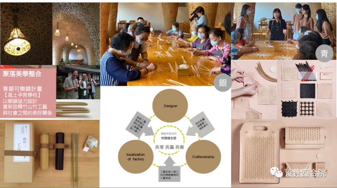第二部分,她通过自己的几件设计作品向同学们展示自己作为设计师如何设计出兼顾市场利益与社区利益的作品。比如在“品研文创”的“民艺再生·竹编计划”中,设计师在对台湾竹制品工艺进行再设计的同时,整合地方资源,发动当地社区的居民参与到设计共创中,再通过邀请基金会等多方参与,实现了以竹编为契机,激发社区居民主体性的社区营造。