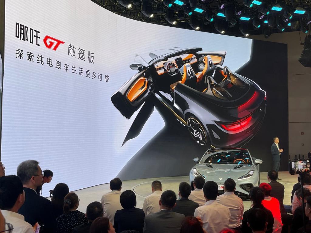 公司2000级工业设计员工,哪吒汽车设计中心内饰总监张文泉,本次车展推出由他主持设计的两款作品:国内首款智能电动两门四座GT跑车,和无顶敞篷SPEEDSTER版概念车。当下年轻人是自信个性的Z世代,对跑车的需求也不再仅仅满足于车辆外观足够炫酷,在哪吒一直追求的“科技平权”,“为人民造车”的精神引导下,哪吒GT“内外兼备”,更快、更舒适、更好玩,诠释电动时代的消费新主张,开启了跑车品类的新纪元!在哪吒GT基础上打造的敞篷speedster版,集科幻与酷玩一体,概念车尾部超Q鸥翼门,在现场观众点击互动后有彩蛋呈现,把设计过程的松弛与愉悦也带给消费者。