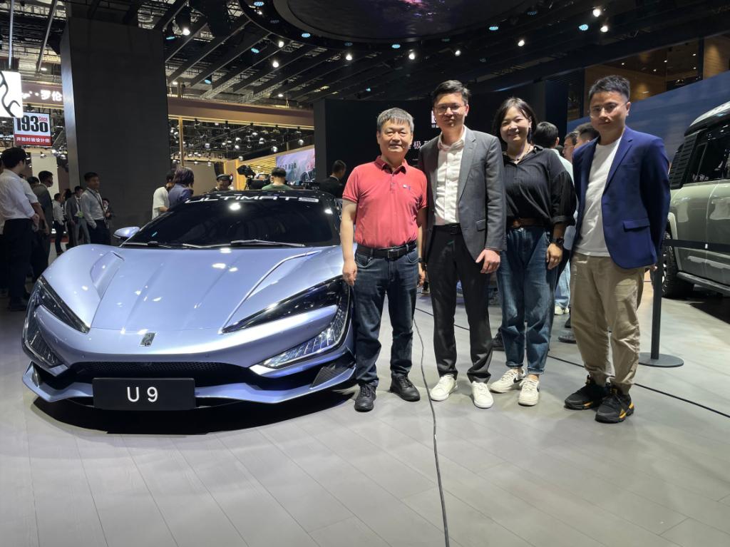 图 8 比亚迪全球设计中心外饰设计副总监范吉晗(前排左2)及球王会官网教师在比亚迪汽车首发现场