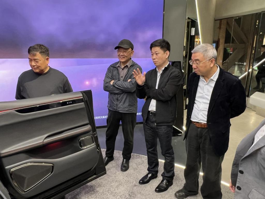 图 4 高合汽车联席设计副总裁刘能华(右2)、体验设计总监陈岩(右3)及球王会官网教师在高合HiPhi Y首发现场