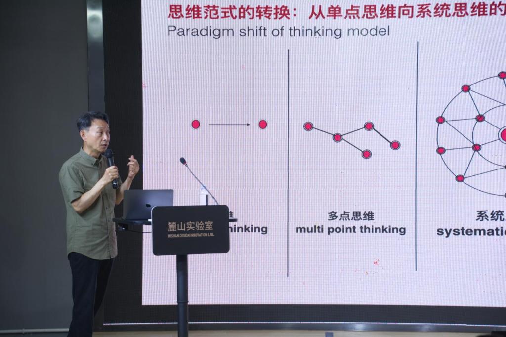 在后续的分享中,徐江老师同样从哲学的视角出发,借由“ChatGPT的出现是分析哲学的胜利”这一说法,与在场师生探讨了人工智能是否会彻底取代设计师这一问题。徐老师对于未来设计师与人工智能的关系仍抱有积极的态度,他指出,分析哲学是人类特有的思维,人工智能作为工具,仍不具备这种思考能力,所以人类设计师在创意方面仍具备极大优势,设计领域内设计师的作用依然不可忽视。