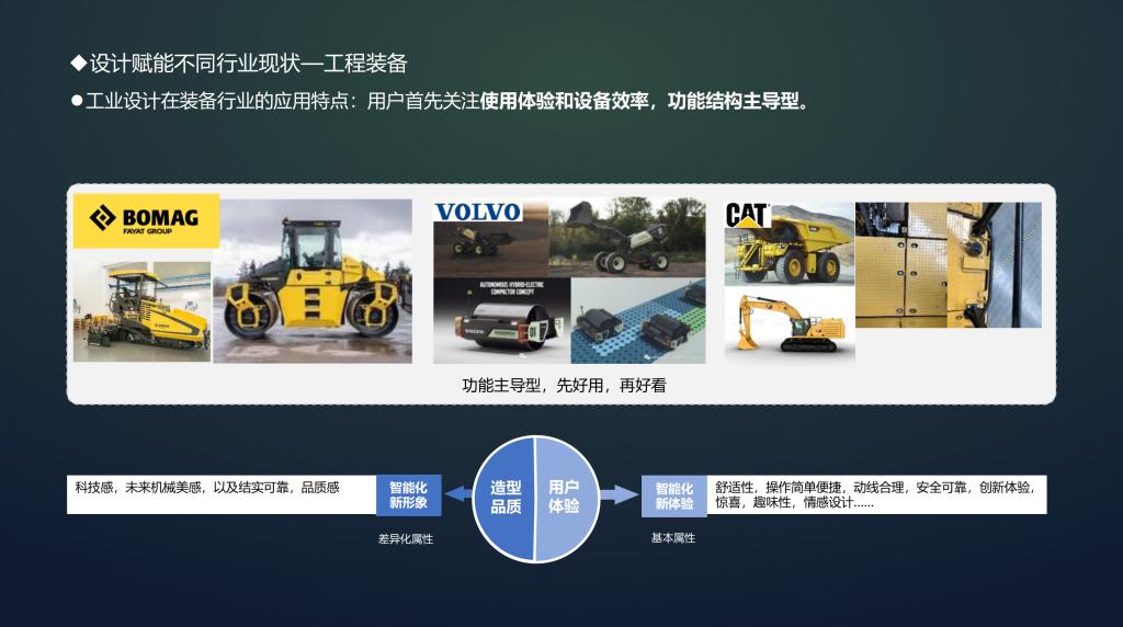 在工程机械行业,首要关注的是产品的使用体验和设备效率,工程机械是以功能结构主导型的行业。黄莹为同学们介绍了多个国际工程机械行业领先品牌的产品案例,这些品牌的产品以功能结构为主导,但又在细节上体现了精美的设计。未来,工程机械行业在造型品质上会更注重智能化的新形象打造,将会产出兼具科技感、未来机械美感、品质感等多品质集合的新产品。