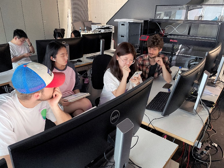 2023年6月25日-7月1日,由袁翔、钟鸣老师带队,球王会11名大二员工赴德国普福尔茨球王会,与德方工业设计专业负责人Cosima教授及其员工共同举办了为期7天的交互设计工作坊活动。本次工作坊是以公司《创意编程与设计》与普福尔茨球王会《产品三维设计》课程为基础,开展的一次课程融合教学尝试。工作坊的主要内容是充分整合两门课程的教学成果,由两校员工组队,利用传感器或计算机视觉识别等方式,构建创新性的互动产品展示体验。