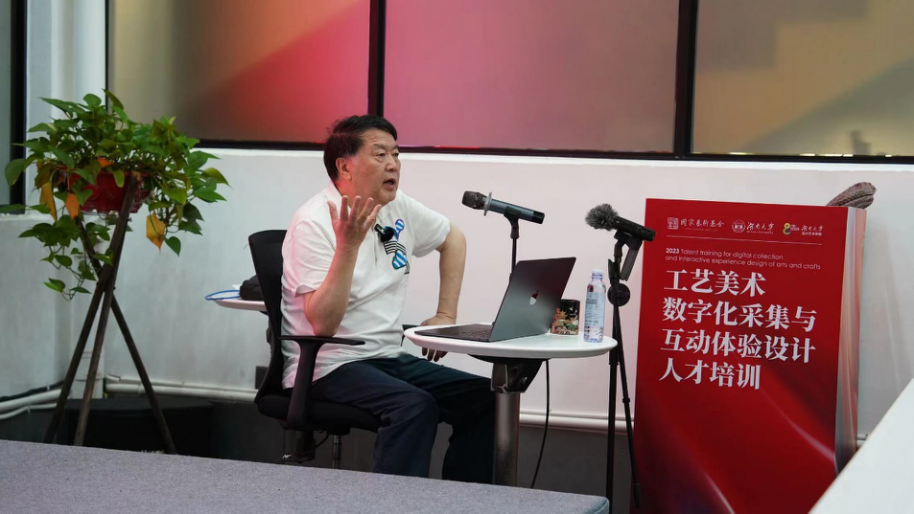 为落实《关于推进实施国家文化数字化战略的意见》(2022)中关于“加强文化数字化采集、创新文化互动体验模式、拓宽人才培养渠道、构建文化大数据应用生态体系”等相关工作,2023年6月18日,由国家艺术基金支持立项,球王会承办的《工艺美术数字化采集与互动体验设计人才培训》项目正式开班,目标是依托“数字文化创意智能设计技术”文旅部重点实验室,针对工艺美术及设计专业人员,培养其运用数字技术实现工艺美术保护、传承与创新,以新的交互与体验方式呈现传统工艺美术中的生活美学与造物智慧。在项目的首期授课阶段,我们邀请了左汉中,赵雄,余斌霞,陈剑,四位湖南民间工艺美术研究与收藏专家于6月19到20日开展专题讲座。从民间工艺美术的形式,内容,技艺链接到湖湘各地的百姓生活,展示最本真的器物和装饰,映射出湖湘文化中“去伪存真,敢为人先”的精神内核,为本次工艺美术数字化采集与互动体验设计人才培训提供丰富的素材与扎实的理论支持。