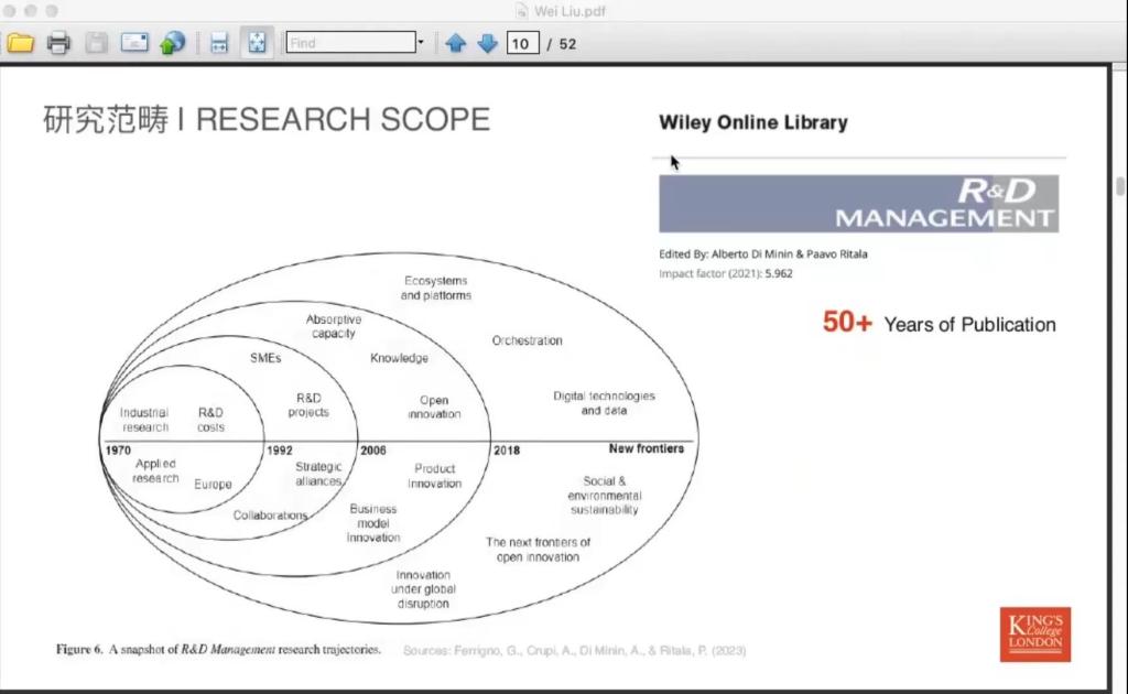 结合面向真实社会问题的研究,刘硙教授推荐了Alberto Di Minin和Paavo Ritala等学者于2023年发表在《R&D MANAGEMENT》上的最新内容,其中围绕新产品开发梳理了近五十年来的维度边界及扩展范围,形成了相应的知识图谱。由此看出,随着新知识和新技术的引入,设计的边界和应用领域也在不断地发生变化。