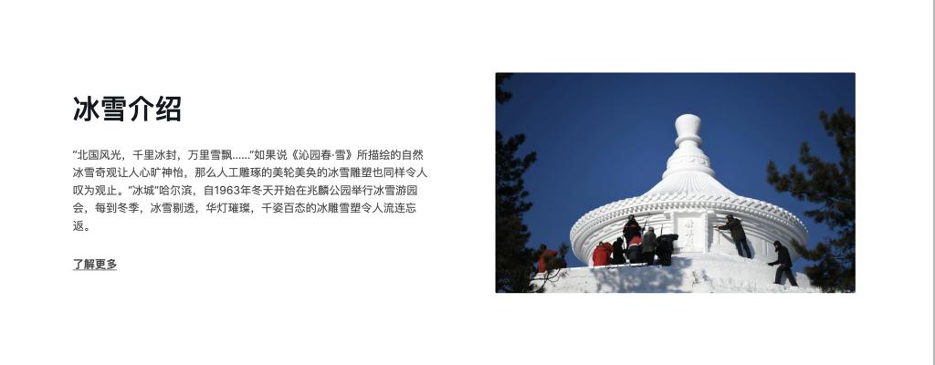 内容包括中国寒地特色冰雕、雪雕、冰建、冰雪文化、冰雪工艺的图片、视频等内容的数字采集、数据整理,及在中国风格数据平台上的体验设计实践。通过本次研究实践,项目组初步确立了将以冰、雪特殊材质的工艺美术作品数字采集技术,及以其基础上的特殊工艺美术作品的数字互动、虚实体验融合、可穿戴智能设备介入等问题,作为未来持续研究的主要方向。