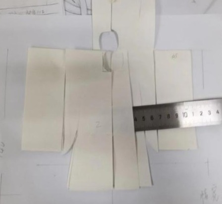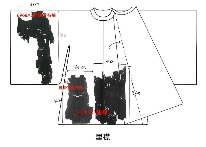 第二步是进行严谨的纸样比对和残片复原。项目组围绕前期的数据资料,先后与湖南博物院的董鲜艳、四经绞花罗非遗传承人周家明等专家合作,从残片的尺寸、工艺及特征推断出服装始状,绘制出服装款式图及纸样图,经过拼接考证实现了服装的初步复原。