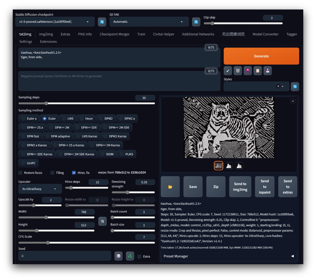 基于Stable Diffusion WebUI生成挑花风格的图案
