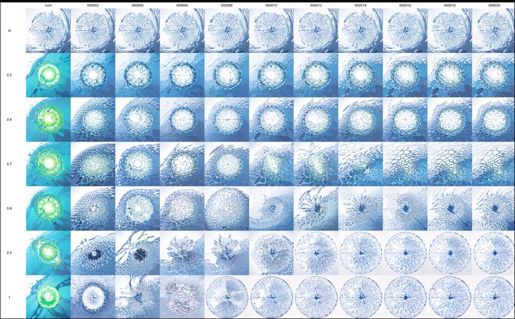 课题首先对耀州窑黑釉进行归纳和梳理,通过光谱仪等设备,了解其析晶行为和显微结构。利用Grasshopper编程软件模拟釉面斑纹析晶成像规律,生成新的数字图案用以扩充数据库。再通过stable diffution深度学习,对黑釉瓷不同类型肌理开展人工智能训练实验,将黑釉瓷的艺术风格映射并生成新的图像。最终将其美学特点、设计理念可以应用到衍生的产品之中。