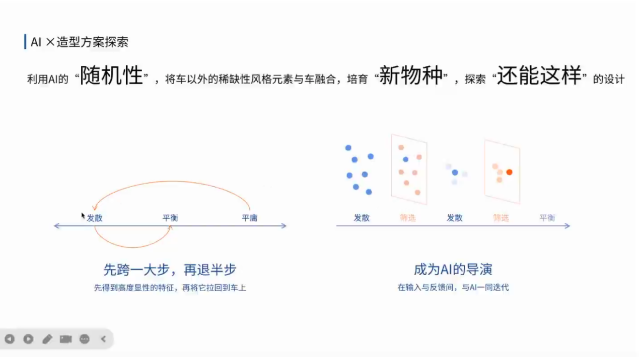 主讲嘉宾王丹老师有智能装备实践和研究背景,历任工业设计师、设计策略师、设计传播策划师,先后负责广汽首款量产新能源车外观造型设计策略、广汽部分概念车的设计策略,统筹了广汽汽车旗下27款新车的内容传播,为广汽汽车搭建了全领域自媒体平台。近年来,一方面在认知学基础上构建了广汽特色“情感化理论体系”,该体系帮助设计师快速建立设计同理心,为整车开发设立更简明、更准确、更通用的体验目标。另一方面,主导了AIGC在广汽设计内部的应用与普及,驱动全新汽车设计流程的建立。