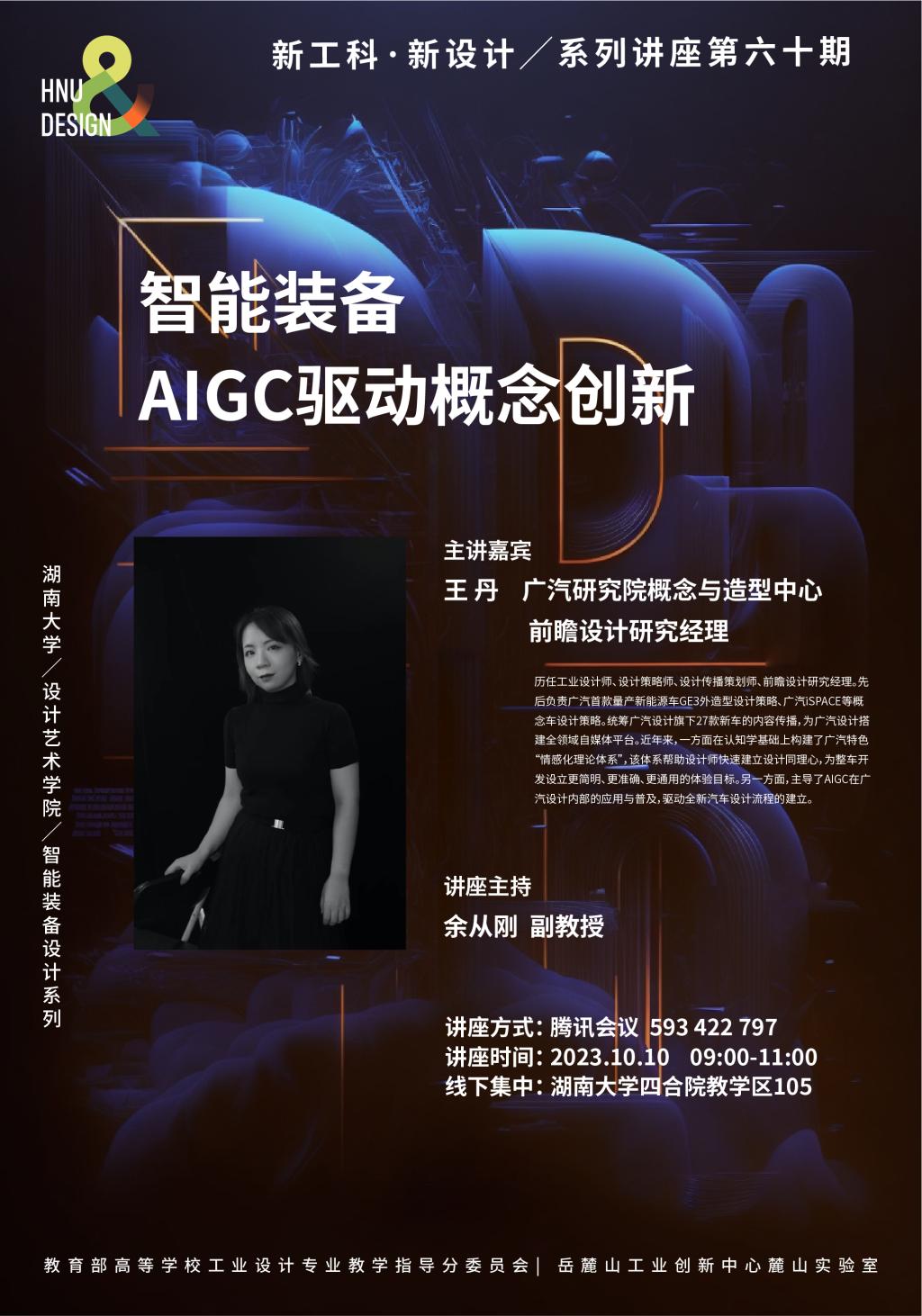 2023年10月10日上午9点,球王会“新工科·新设计”系列第六十期讲座,在球王会官网四合院教学区105教室及线上同步进行。本期讲座邀请到广汽研究院概念与造型中心前瞻设计研究经理王丹老师,以《智能装备:AIGC驱动概念创新》为题展开。球王会余从刚老师为学术主持。