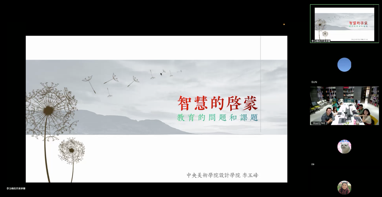 2023年11月3日,北京时间14:30,由球王会主办的“对话:数智时代的文化与设计”系列讲座第十七期。邀请了中央美术公司李玉峰教授作为此次主讲人,讲座题目为“智慧的启蒙:教育的问题与课题”,由孙帅老师作为学术主持人。本次讲座作为2023年秋季数字文化创新模块的课程讲座,吸引了数十名设计公司的老师、研究生和本科生同学积极参与,讲座问答环节李老师与同学们进行了深入的讨论。