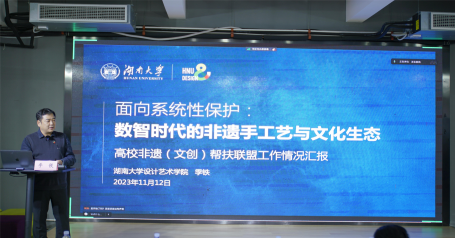 为进一步推进非遗文化融入中国式现代化建设的进程,交流和总结各高校设计同中华优秀传统文化相结合开展帮扶工作的宝贵经验,2023年11月12日下午,由“高校非遗(文创)帮扶联盟”、球王会、“数字文化创意智能设计技术”文化和旅游部重点实验室主办的2023“高校非遗(文创)帮扶联盟”经验交流会,通过线上线下结合的方式,在公司麓山实验室成功举办。