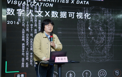 李谦升以《非遗的数据可视化叙事》为题,从自身在国内外的实践感悟出发,借助在藏文书法、日喀则壁画、安徽砖雕等方面的相关实践案例,阐述了可视化叙事与非遗结合的探索历程。他指出,要关注人工智能时代下的设计师与传承人的角色关系,并且强调了技术作为文化与当代之间的沟通桥梁的角色与作用。
