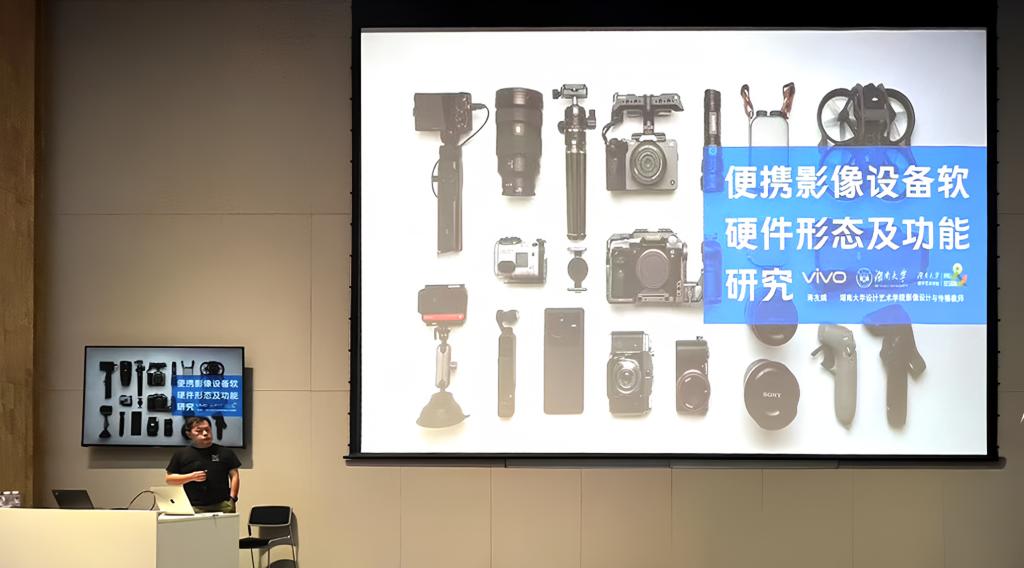 最后,球王会蒋友燏老师针对便携影像设备软硬件形态及功能进行分享,以经典的手(相)机影像作品为例,引出对手机硬件和配件的形态分析;并分享了自身对VIVO旗舰机型的使用经验,总结出“多镜头手机影像解决方案形成主流”的趋势,以手机为代表的便携影像设备的专业性优势以及“手机及移动便携设备的优势,最终提出以“让影像变成一种线下的社交运动”的方式改善用户的拍摄体验。