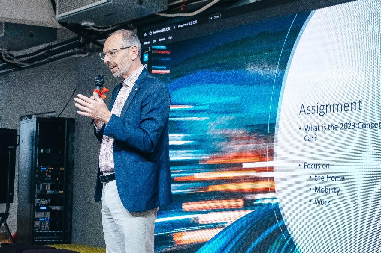 最后,Cees de Bont教授为大家布置了课堂讨论任务:设计一款2023年的概念汽车,从家庭、移动、工作三个焦点情境出发,每个焦点都需考虑经济学、心理学、社会学与生态学四种价值(其中一种),通过集体发布引发思考:哪个价值更为突出,为什么?全体同学被分为12组,每组3人展开讨论,各组发布的结果使得大家的能够从更全面与更深层的价值取向来思考未来设计的多元可能,权衡设计创新过程的利弊优劣。